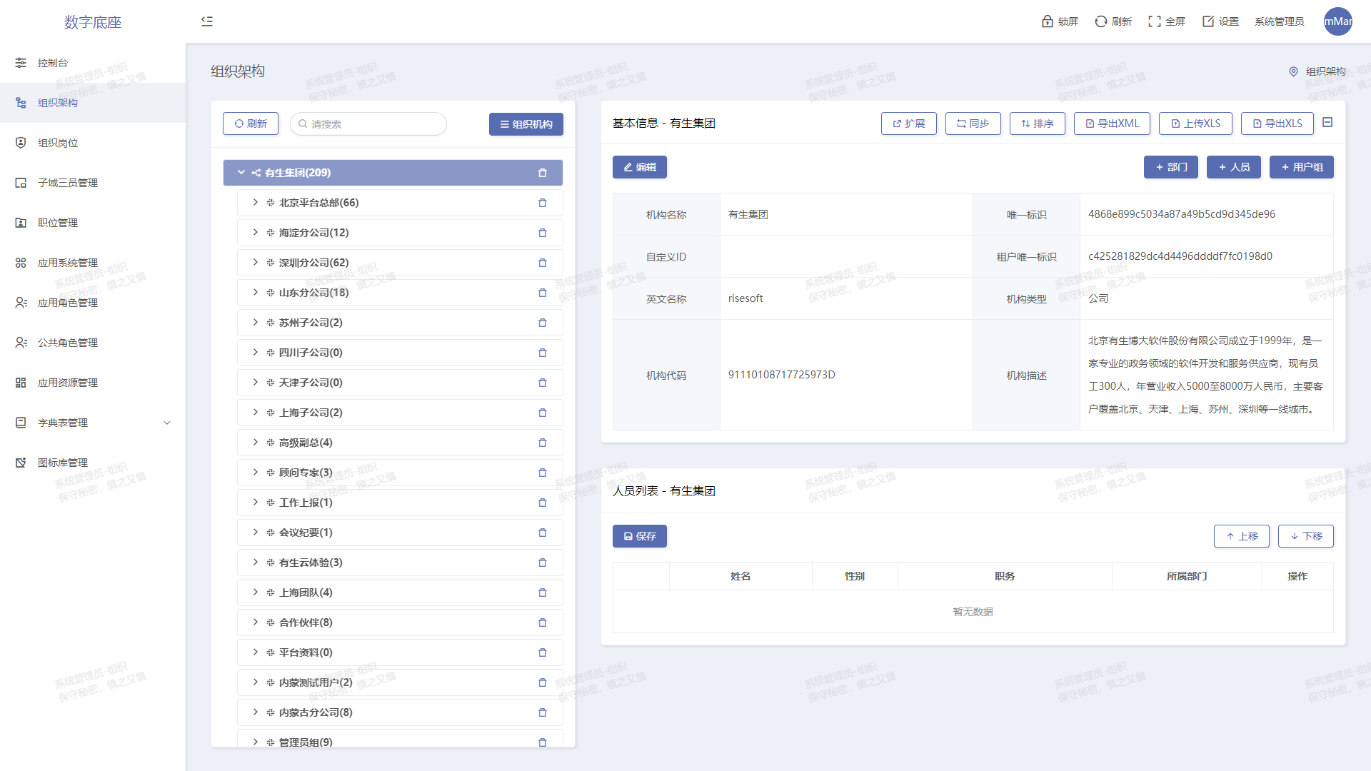 以組織結(jié)構(gòu)和應用授權(quán)為主線,內(nèi)置三員管理、崗位制等功能